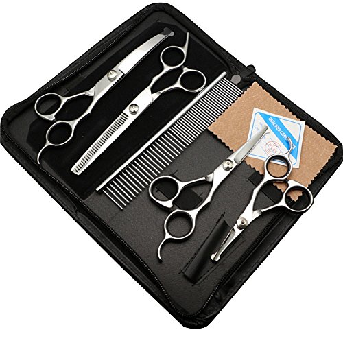 Packages included: 4.5 inch straight shear * 1 5.5 inch straight shear * 1 6.5 inch thinning shear * 1 6.5 inch curved shear * 1 7.48 inch comb * 1 Black zipped case * 1 Straight shear - for cutting hair, mainly used for pet hair flat part. Tooth shear- used to thinning hair, help the pets away from hot weather/temperture bother, or helps to pet away from dirty or bacteria. Curved Shear- an essential tool for trimming details to make pets unique or beautiful looks. Grooming comb- more convenient to use in the beauty process or comb in daily life to to make pets comfortable. Warm reminds: 1. All the screws on the scissors have been adjusted to the exact right positions before shipped out to you. 2. The grooming scissors can be used directly while being received. 3. Kindly suggest better not adjust screws easily casually by yourself. Please do not hesitate to contact us if need help.