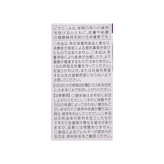 영양 성분 : 영양 성분(3 입984mg당)열량 6kcal 단백질 0g 지질 0.5g 탄수화물 0.4g나트륨 2.6mg비타민A 300μg《루테인》 15mg 빌 베리 엑기스 60mg 아스타크산틴 1mg