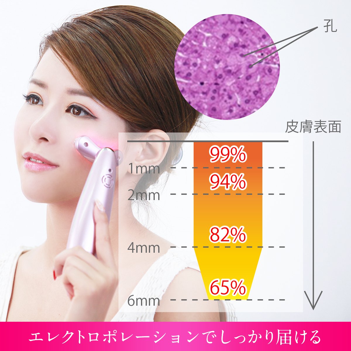 · It is excellent in permeation than ordinary ion introduction by cosmetic method which can deliver beauty ingredients as well as no-dollar mesotherapy electroporation which permeates more kinds of beauty ingredients than electroporation.