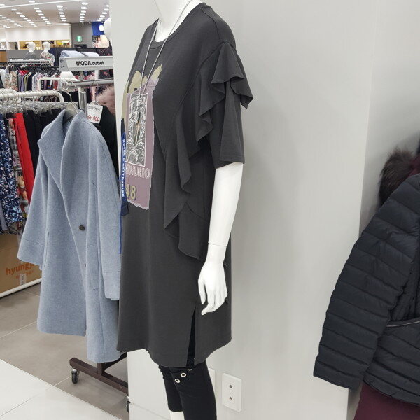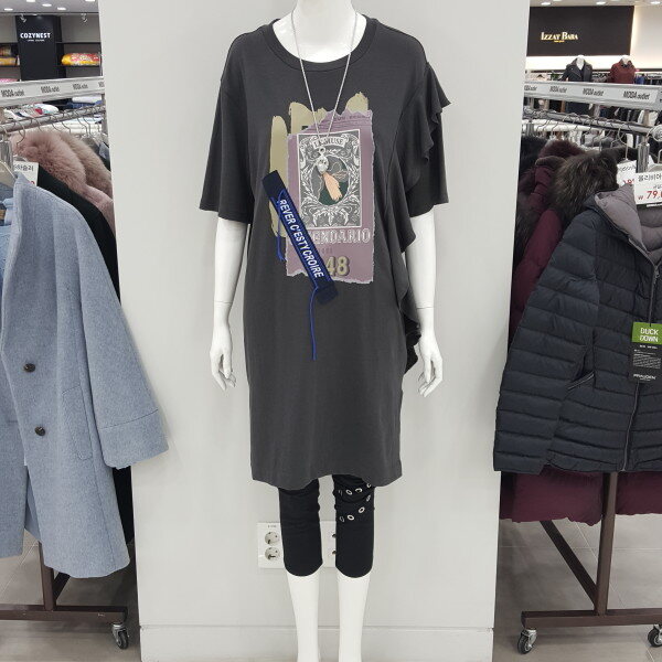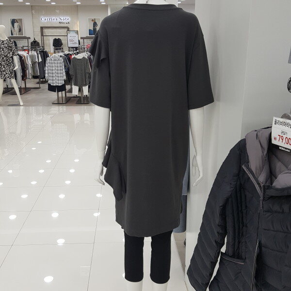 프릴장식을 포인트로 한 롱기장에의 캐쥬얼한 티셔스로 스키니와코디하기 좋은 아이입니다