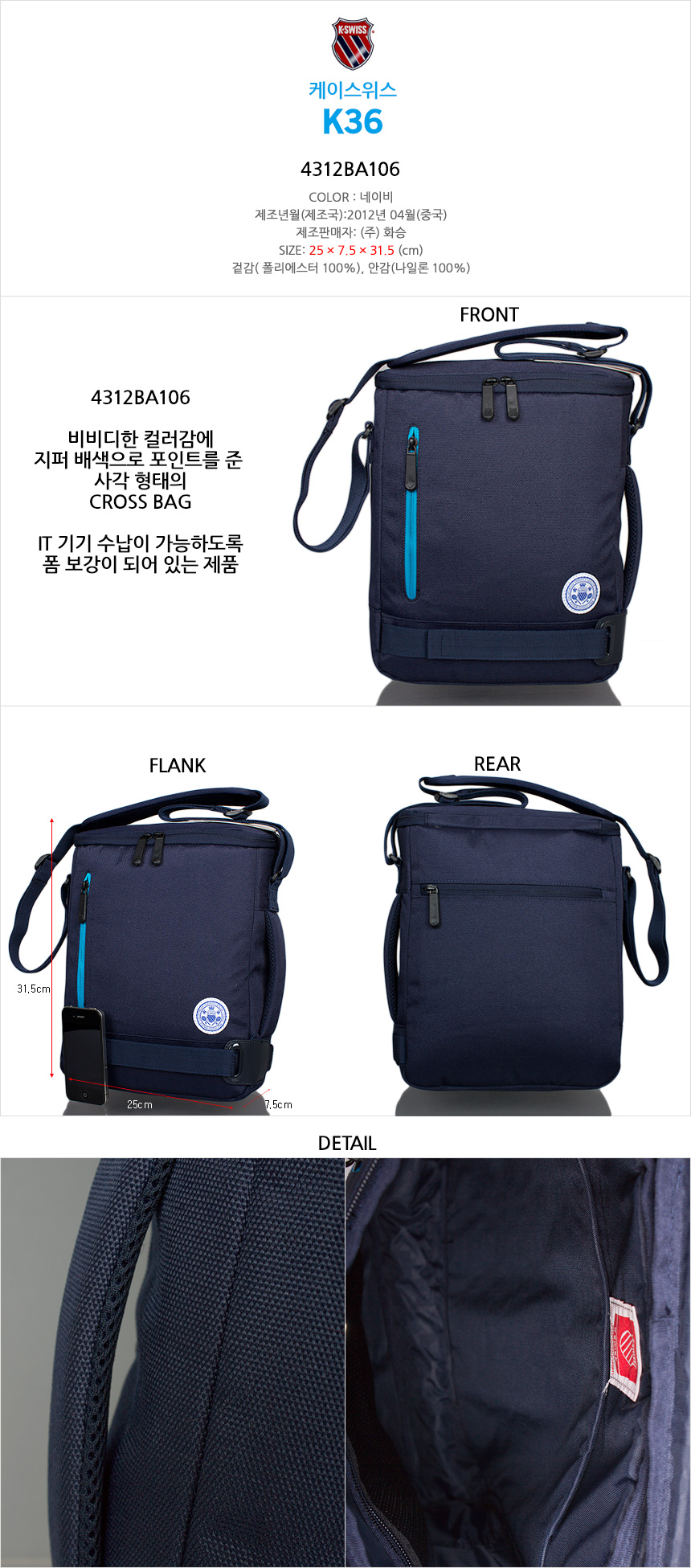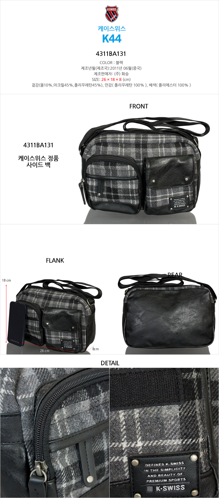 ASICS K-SWISS/ Shoulder Bag/ Sports/ Casual/ Cross Bag/ Side Bag
