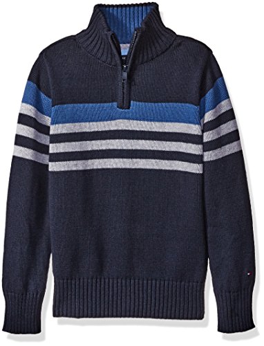 Tommy Hilfiger peter half zip sweater. Partially striped, 7g weight.