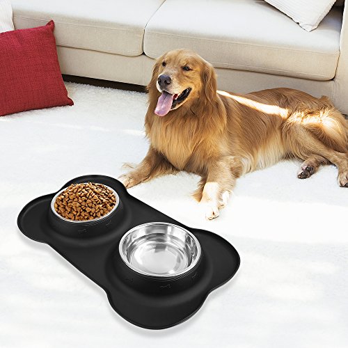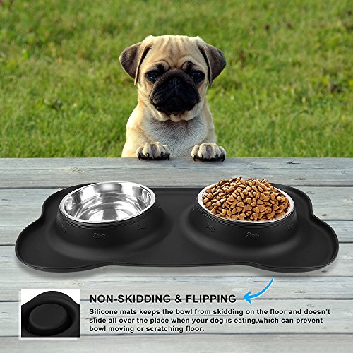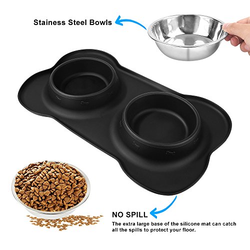 Specification: Capacity: 24oz (one bowl) Silicone Mat: 19 x 11 x 2 inch Color: black Material: BPA free silicone, stainless steel