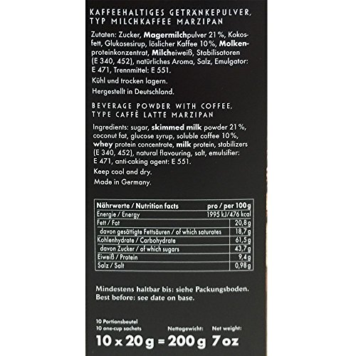 -. Feature : MILCHKAFFEE VON NIEDEREGGER / MIT FEINSTEM MARZIPANGESCHMACK / BESONDERS CREMING / FÜR ALLE MARZIPAN-FANS EIN GENUSS / 10 X 20G