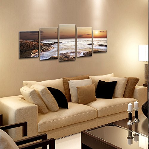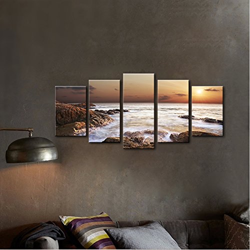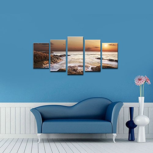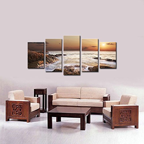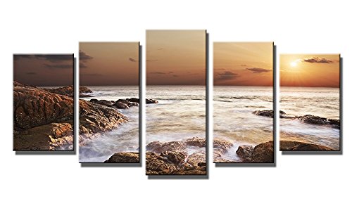 -. Title : Wieco Art - the Rocky Sea - Canvas P.R.Int Stretched and Framed Canvas Wall Art for Wall Decorationand Home Decoration Seascape Canvas Art P5RLA009