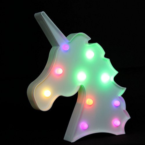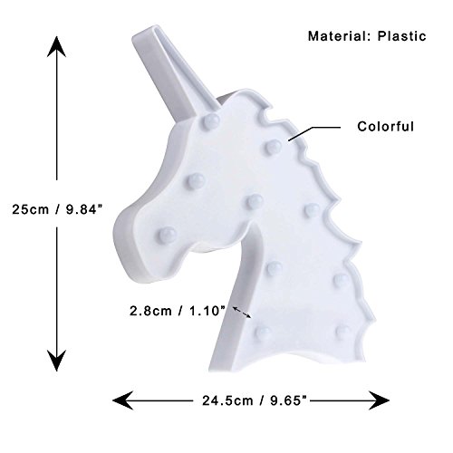 - 4.Light Up Your Home with "Unicorn"-LED light shines with 10 LED warm white lights. Integrated hanging hook holes for ease of display on wall or just rest on mantle, shelf, table or dresser