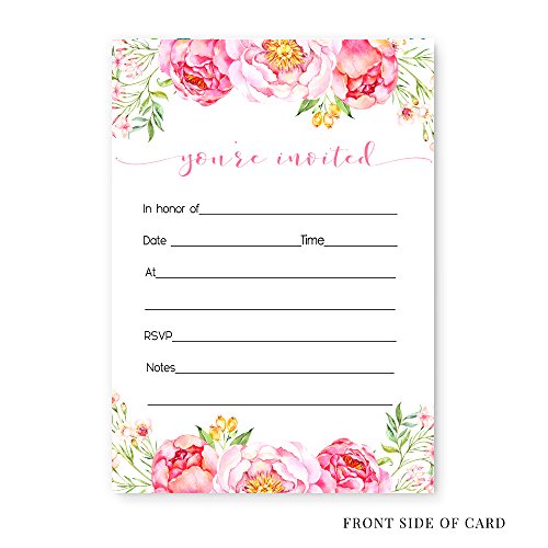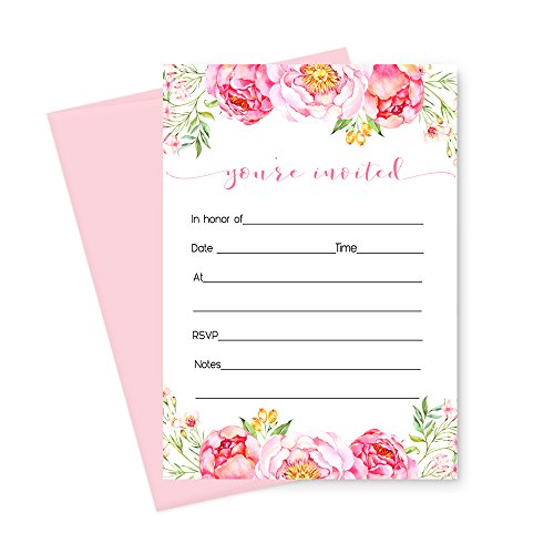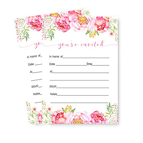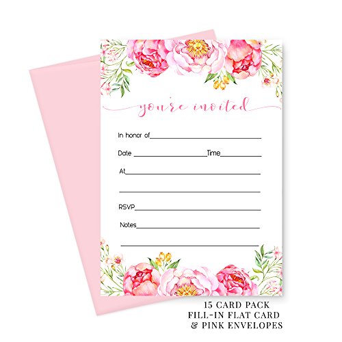 Floral Invitations (Fill In) Set of 15 with Pink Envelopes