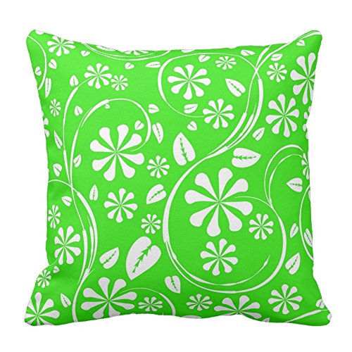 (KarenShop)/Bedding Bath/Bedding/DIRECT FROM USA/Fashionable Designed Durable Cotton Pillowcase Flower Leaf Printed Neon Green and White Floral ...