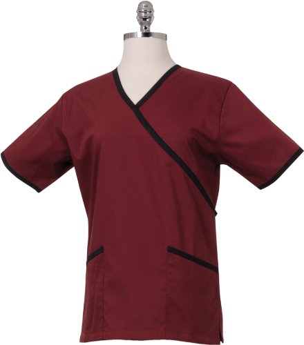 Chef Works Women's Medical Scrub Top, Wine/Black