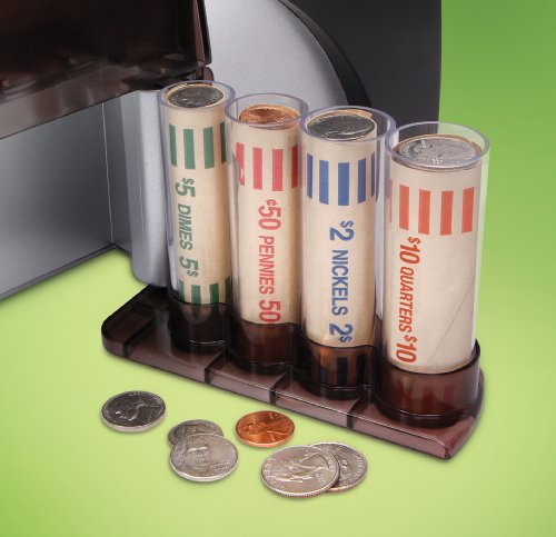- Feature : Large capacity hopper allows change to be easily funneled for sorting; change is automatically funneled and counted by activating the on/off switch / Accepts almost all U.S. coins including pennies, nickels, dimes, and quarters / Coin tray slides to remove coins and wraps conveniently; converts your loose change into sorted coin rolls / Bonus: includes assorted coin wrappers / Requires 4 AA batteries (not included)