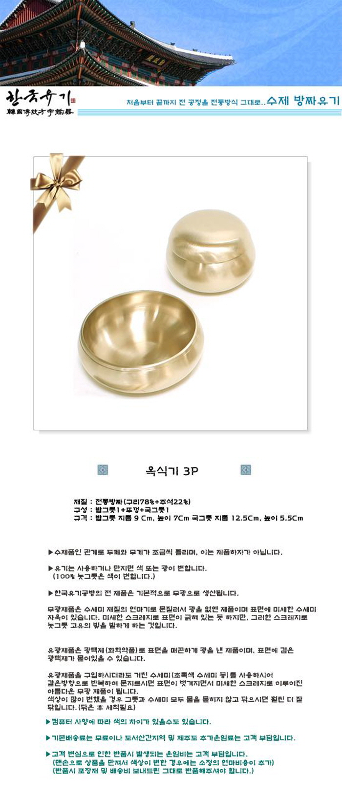 - 품명 및 모델명[한국유기-수제방짜유기] 옥식기 3P