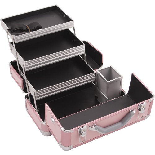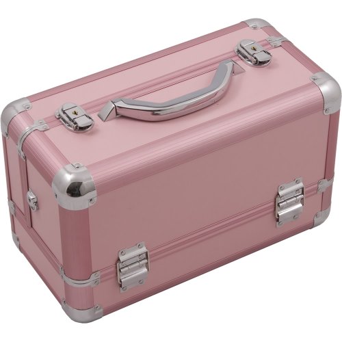 HIKER Makeup Train Case HK3101 Professional Aluminum, 3 Tier Tray and Brush Holder, Locking with Shoulder Strap, Pink Matte