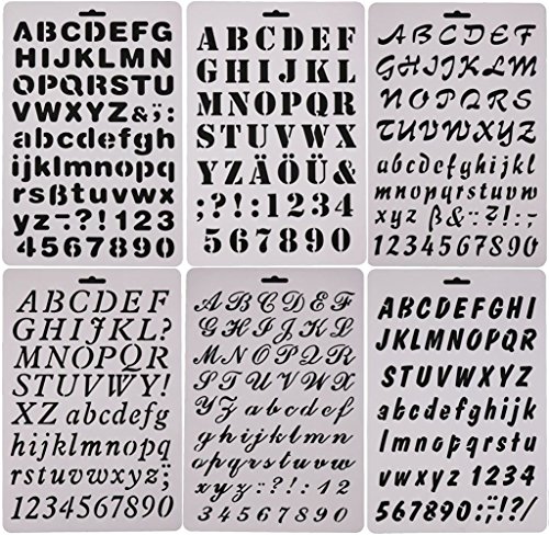 Easonove Set of 6 Alphabet Letter and Number Drawing Painting Stencils Scale Template for Planner/Notebook/Diary/Scrapbook/Journaling/Graffiti/Card DIY Drawing Painting Craft Projects