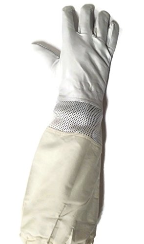 Forest Beekeeping Premium Goatskin Leather Beekeeper's Glove with white vent Long Canvas Sleeve with elastic cuff (L)