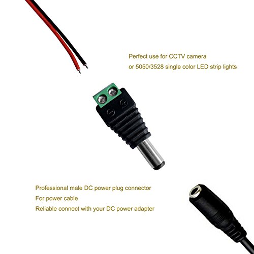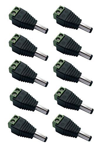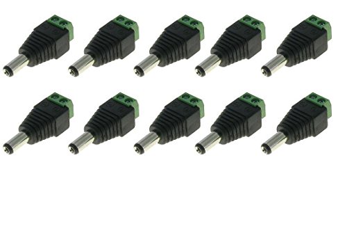 Haiker Pack of 10Pcs 5.5mm x 2.1mm DC Power Male Connector DC Jack Cable Adapter Plug for CCTV Camera use, LED Strips