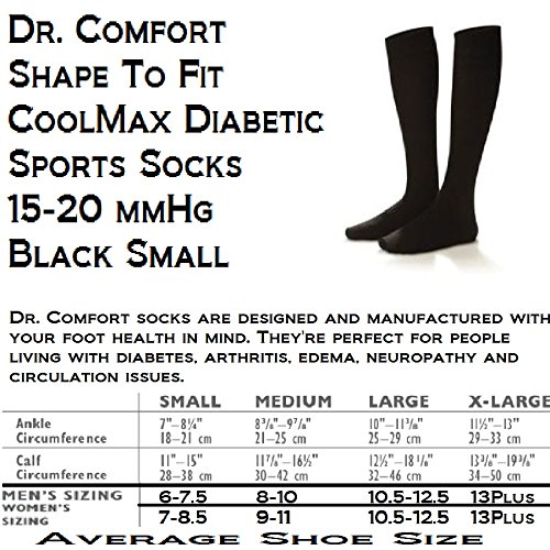 Dr. Comfort Unisex Diabetic 15-20 mmHg Compression Sport Socks (Small (Men's 6.5-8/Women's 7.5-...