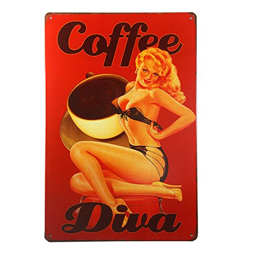T-rayCoffee Diva pin up girl metal sign Metal art Decor suit for Bar Pub Shop Store