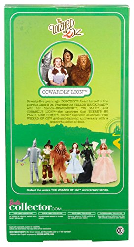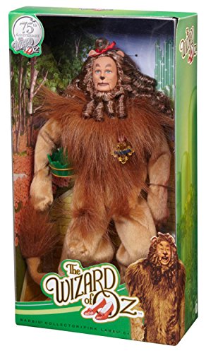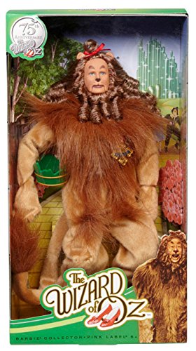 Barbie Collector Wizard Of Oz Cowardly Lion Doll: Follow the yellow brick road as it leads to a collection of iconic dolls inspired by the 1939 version “The Wizard of Oz.” In celebration of the classic film's 75th anniversary, each doll is sculpted in vinyl to mirror his or her movie likeness. Before he receives a medal of courage from the Wizard, the Cowardly Lion must face his fears on a journey through the Land of Oz. With curly brown faux fur and a tiny red bow atop his head, the doll is sculpted in the likeness of Bert Lahr, the actor who portrayed the Cowardly Lion in the film. Ages 6 and older.Feature