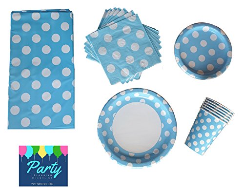 -. Feature : 16 Luncheon Plates (9") & 16 Dessert Plates (7") / 16 Luncheon Napkins / 16 Hot/Cold Paper Cups (12 oz.) / Matching Plastic Tablecover 54" x 108" / With your order, you'll also receive a Party Planning Checklist PDF to help get your party organized so you can enjoy the party too!