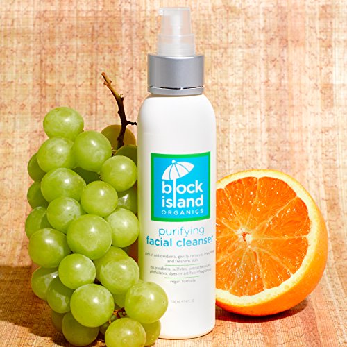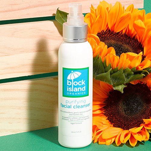 Block Island Organics - Organic Purifying Facial Cleanser with Antioxidants Vitamin C and E - Gentle Botanicals Cleanse Skin Leaving Face Refreshed and...