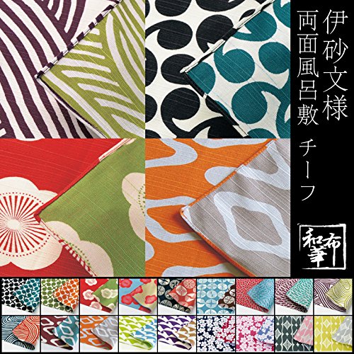-. Title : むす美 ふろしき チーフ 伊砂文様 両面 菊 (アカ/セイジ)