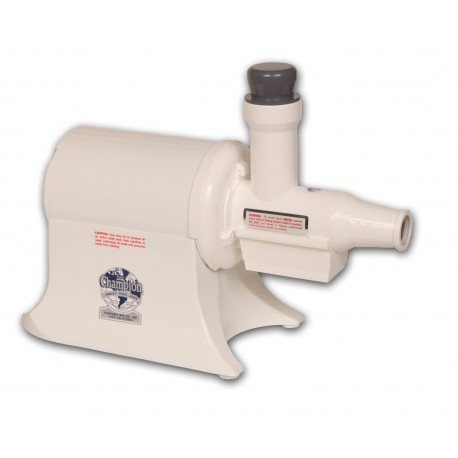 Champion Household Juicer 2000 PLUS G5-NG-853S Features & SpecificationsChampion Household Juicer 2000 PLUS G5-NG-853S - SILVER MODEL The Champion Juicer comes inBlack,Silver,Almond andWhiteThe Champion Household 2000+ is a veteran to the juicing market. Champion has been around for over 20 years and we have clients who still rave about their juicer. This is build of a powerful 1/3 horsepower heavy duty GE motor. The large 1.75" diameter feeding tube allows it to take in larger vegetables without cutting them. The floating cutter is designed to separate the juice from the pulp all in one continuous operation with little to no intermittent cleaning. The blades are made of tempered stainless steel that are cast into the cutter for strength and years of use. They never separate or rust!The Champion is also a very versatile machine and can juice all types of fruits and vegetables, but cannot juice wheatgrass. If you are looking for a wheatgrass juicer that can also do fruits and vegetables, 877MyJuicer.com recommends theLexen Electric Healthy Juicer.The Champion household is great for those juicing once to a few times a day. If you are needing more than that, we suggest theChampion Commercial (G5-PG-710). Generally juicing over 12 ounces a day constitutes the upgrade to the commercial juicer.Features:Juices all types of fruits and vegetablesMakes nut butters, frozen fruit sorbets, baby foods, ice creams, sherbets, purees, salsa, muesli and more!All parts are FDA approvedAttachments Included:Tamper / Food PusherInstruction manual with recipesSpecifications: Model2000+Weight26 PoundsDimensionsDepth:17"Width:7"Height:10"Voltage120 V / AC / 60HzFeed Tube1.75" Round Feed TubeMotor540 Watts 1/3 HPExtraction MethodSingle Gear MasticatingWarranty10 Years Motor and Parts (except cutter blade)What is the difference between the Champion Household 2000+ and the Champion Commercial G5-PG710? There are a few main differences to the Champion Commercial (G5-PG-710) to theChFeature