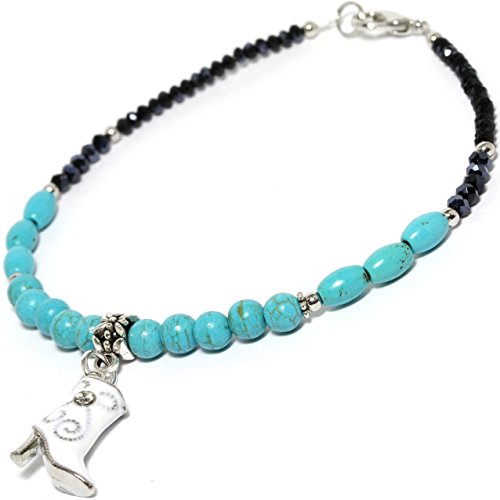 -. Binding : Jewelry -. Brand : AnsonsImages -. Department : womens -. Feature : Bracelet Or Anklet Use. / Earth Stone Beads Are Made Of Resin. / Silver Tone Alloy Material. / Lobster Claw Clasp / Please See Other Photo For Measurements -. Label : na -. Manufacturer : na -. Model : na -. MPN : na -. PartNumber : na -. ProductGroup : Jewelry -. ProductTypeName : FASHIONNECKLACEBRACELETANKLET -. Publisher : na -. Studio : na -. Title : 9.5" Inches Anklet Bracelet Earth Stone Beads Cowboy Boot Turquoise Black AnsonsImages