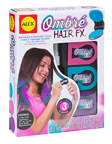 ALEX Toys Spa Ombré Hair FX lets you blend and layer color into your hair for a trendy look. Add pink, purple and teal to your flowing locks for a style that will surely stand out. The colors wash out so you could be sporting a design every day. The kit includes 3 hair chalk applications (0.1 oz.), spray bottle and easy instructions. Recommended for children 8 years of age and older.Feature