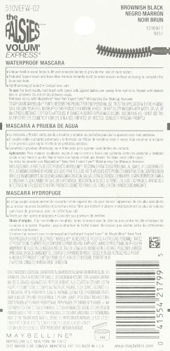 -. Binding : Misc. -. Brand : Maybeline New York -. Color : Very Black -. IsAdultProduct : 0 -. Label : Maybelline New York -. Manufacturer : Maybelline New York -. ProductGroup : Beauty -. ProductTypeName : BEAUTY -. Publisher : Maybelline New York -. Studio : Maybelline New York -. Title : Maybelline New York The Falsies Volum' Express Waterproof Mascara, 0.25 Fluid Ounce