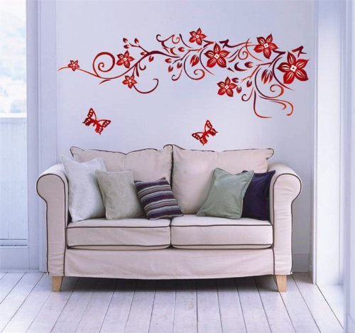 -. Title : BE GOOD Waterproof Wall Sticker Decal Mural with Butterflies and Red Flowers Very Beautiful Wall Decor for Home Room