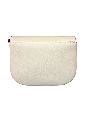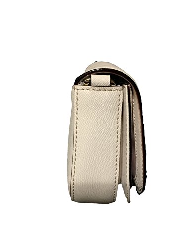 Very compact saffiano finished leather cross-body with 14-karat light gold plated hardware