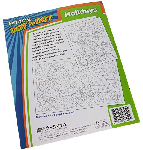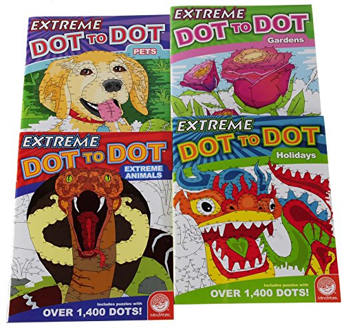 Studio : Deluxe Games and Puzzles Publisher : Deluxe Games and Puzzles Binding : Toy Product Description These are really "Extreme" connect-the-dot puzzles. The intricate puzzles found in this four book series have well over 1,000 dots to connect per puzzle. Some puzzles span two pages. These puzzles require steady hands and "eagle-sharp" eyes. Enjoy connecting the dots and slowly watching an image materialize. One needs to know sequential numbers for 1 to 2,000 to execute these puzzles. The results can be Amazing !!! Extreme Dot to Dot Puzzle Book Bundle includes these four titles: ? HOLIDAYS Extreme Dot to Dot Book ?GARDENS Extreme Dot to Dot Book ?PETS Extreme Dot to Dot Book ?EXTREME ANIMALS Extreme Dot to Dot Book . Each puzzle book has 30 puzzles. Recommended for ages 11 through adult. Paperback books, 8 1/2 x 11 inch format, black numbers on heavy duty white pages. As an option one can color the completed images. Solutions provided at the end of each book. Perfect activity for those with steady hands, good counting skills, a sharp pencil and a good eraser. NOT Suitable for most young children. Returns of new product, if necessary, are always processed promptly. Because this is a bundle it must be returned as a COMPLETE new bundle for any return to process. 0 |