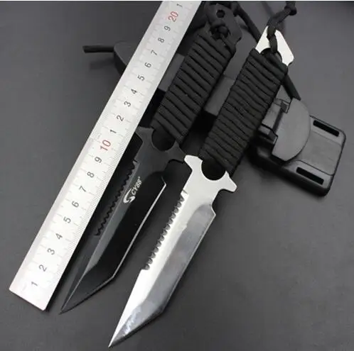 | [해외] 레깅스/낙하산 칼 스테인레스 스틸 다이빙 스트레이트 나이프 야외 생존 캠핑 포켓 나이프 전술 나이프 d32 |