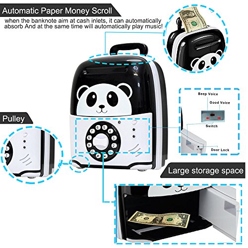 TOPBRY Cartoon Piggy Bank Cash Coin Can Password Electronic Money Bank Safe Saving Box ATM Bank Safe Locks Panda Smart Voice Prompt Money Piggy Box for Children/Toy Gifts Birthday Gifts