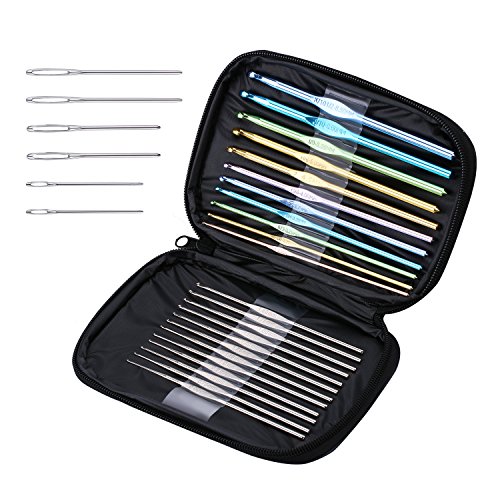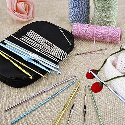 Blulu 23 Pieces Multicolor Aluminum Crochet Hooks Letter Sizes Knitting Needles with Bag and 6 Pieces Large-eye Blunt Needles