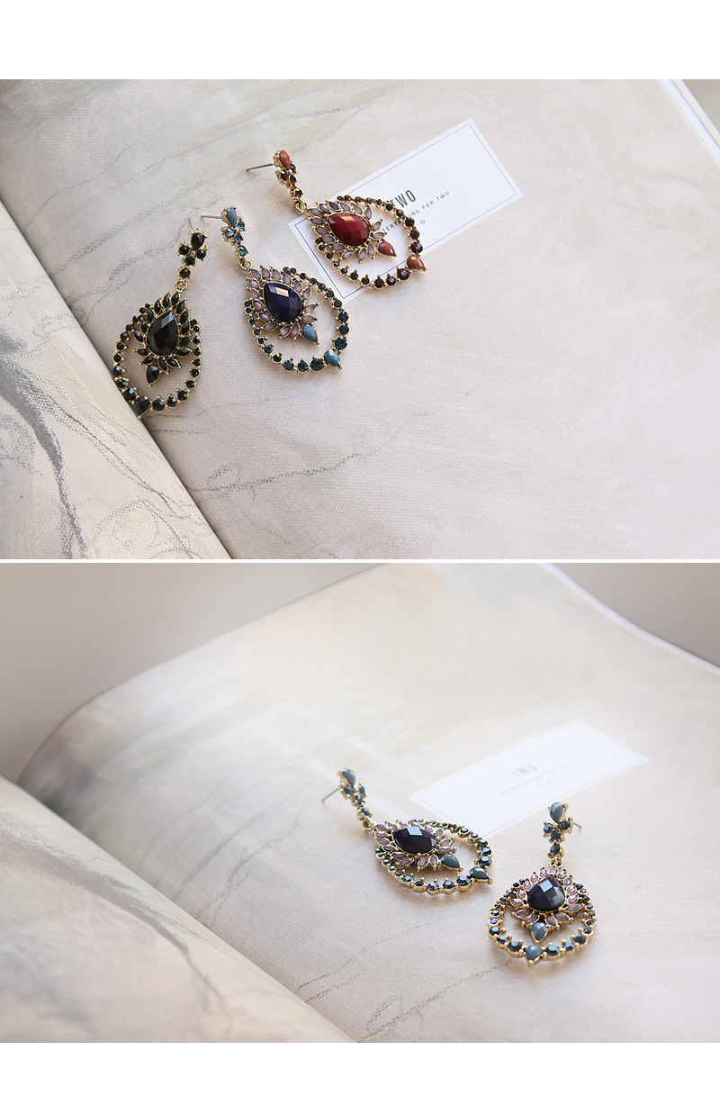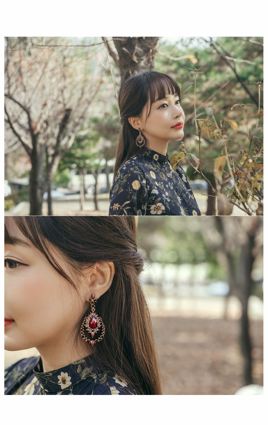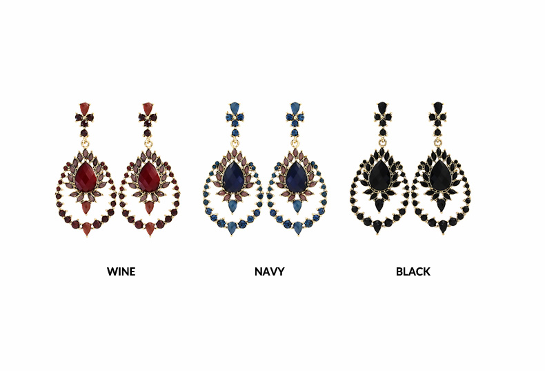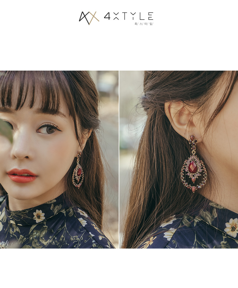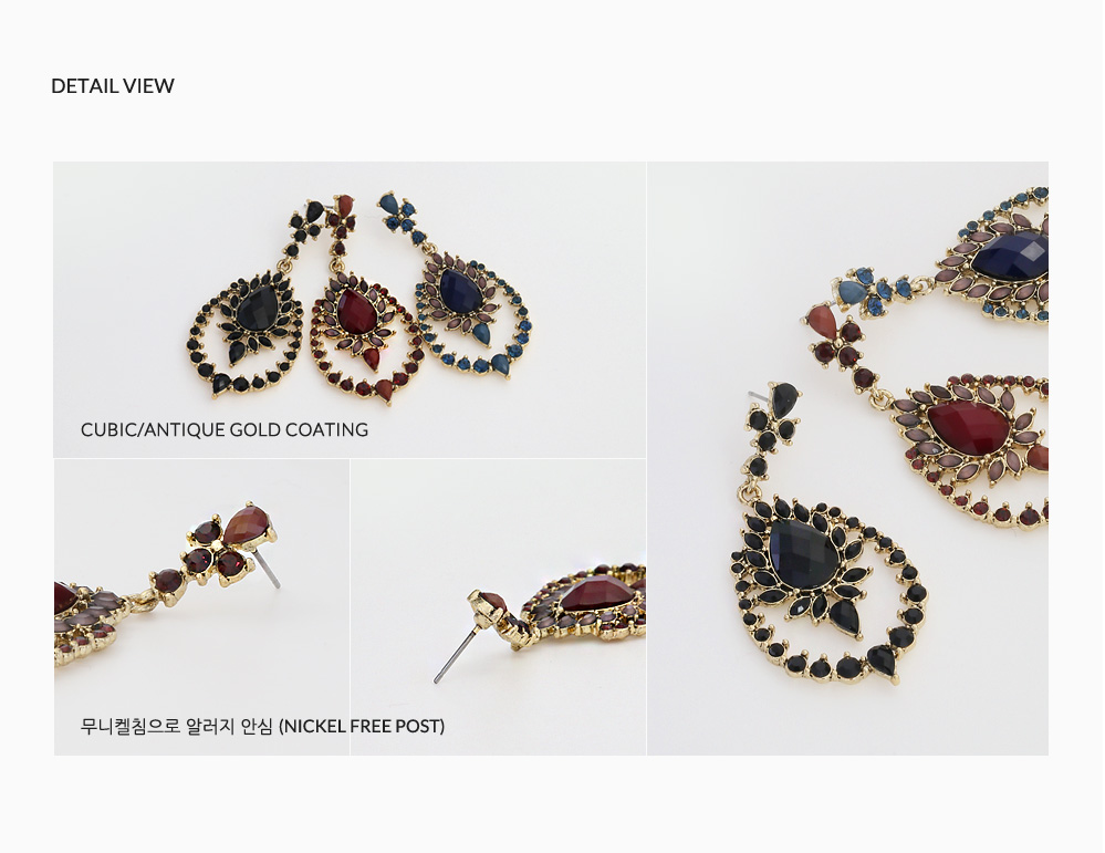 다양한 모양과 비비드한 큐빅이 고풍스럽게 장식된 이어링입니다.
