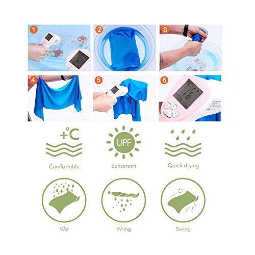 【Instant Cooling】You just to soak,wring out and snap,then the towel will cooling immediately,which can least several hours.It is easy to reactivate by just wringing the water out and snapping and you can enjoy cool!