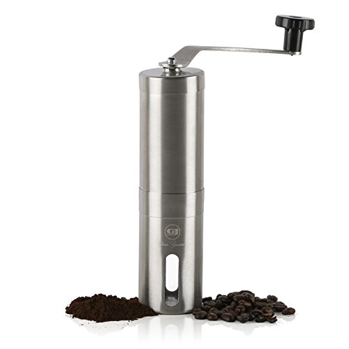 JAVAGOURMENT THE QUALITY CHOICE FOR A COFFEE WITH TASTE!! The JavaGourmet Manual Coffee Grinder is built in a way that assures the highest quality possible for your great cup of joe! the JavaGourmet Manual Coffee Grinder comes with a powerful Ceramic Burr mill with an Adjustable grind selection, of over 18 clicks, ensuring 100% precision control over your desired coarseness. Suitable for AeroPress, Espresso, Drip, Cold Brew, Turkish, as well as pepper or spices.