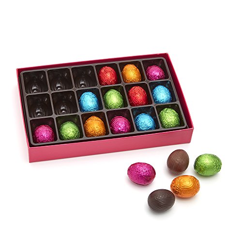 -. Feature : A delightful and delicious Easter treat: 18 assorted mini foil-wrapped chocolate eggs. / Perfect for decorating Easter baskets and tables, our 18 piece Chocolate Eggs Gift Box is filled with delicious chocolate eggs, each individually wrapped in vibrant color foil! / An Easter treat to be savored and shared: 18 assorted mini foil-wrapped chocolate eggs in a variety of milk and dark chocolate flavors. / Delight everyone this SP.R.Ing Season with our 18-piece box of Chocolate Eggs wrapped in colorful bright foil. / A delightful and delicious Easter treat for parties, holiday gatherings, and more, our Mini Foil Egg Gift Box is filled with 18 assorted mini foil-wrapped eggs in festive colors and fabulous flavors.