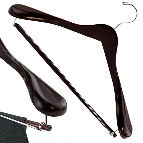 -. Title : Hangerworld 5 Superior Mahogany Wooden Suit Hangers with Locking Trouser Bar & Broad Ends 17.5in