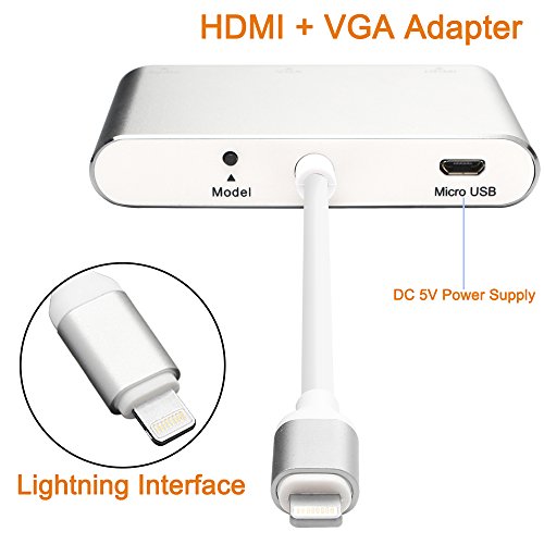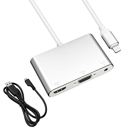 HBetterTech Lightning to HDMI & VGA & Audio Adapter [Plug & Play] Lightning 8 Pin to HDMI with Micro USB Charging Cable + 3.5mm Jack Audio Port for iPhone 7 Plus / iPhone 7 / iPad Pro / iPad Air 2