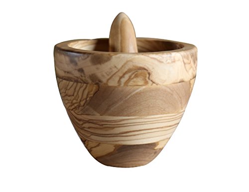 -. Feature : Mortar and pestle crush fresh herbs and other ingredients for fresher flavors than jarred herbs and spices / Waterproof material olive wood don't worry about mildew / Heavy wood easy to mash food / Product size:5"x5"x5.6" / Replace freely if damaged in the process of transportation