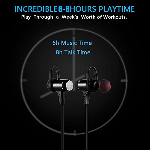 Long battery life allows the earphones to play up to 8 hours of continuous music at a time or 250 hours of standby time,the headset support voice prompt allows notification of incoming calls and phone numbers,so never miss a phone call.Noise Cancelling Earbuds with HD microphone, you get high quality, hands-free phone conversation even on the street or inside shopping mall,giving you happy experience when chatting with friends.