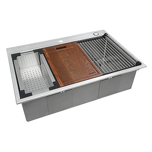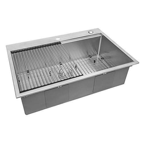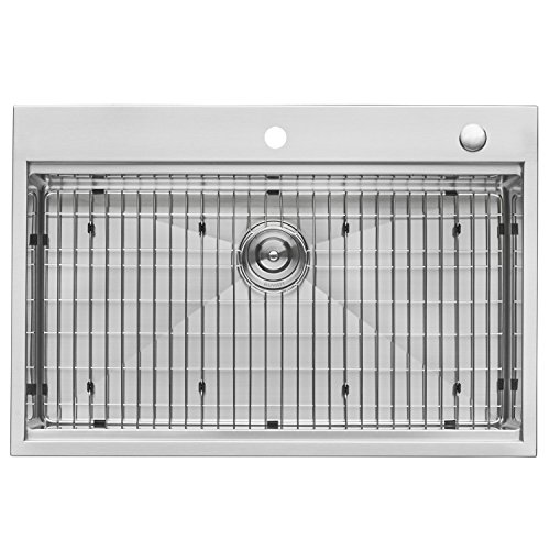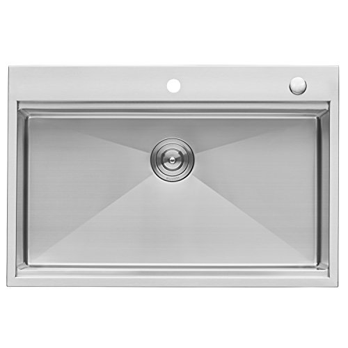 Topmount Installation: 1-inch wide and 1/4-inch high rim all around for a solid overmount look | 16 GAUGE thick premium T-304 grade stainless steel (18/10 Chromium/Nickel) - 37% thicker than most standard kitchen sinks | Commercial grade BRUSHED FINISH - Easy to clean and long-lasting