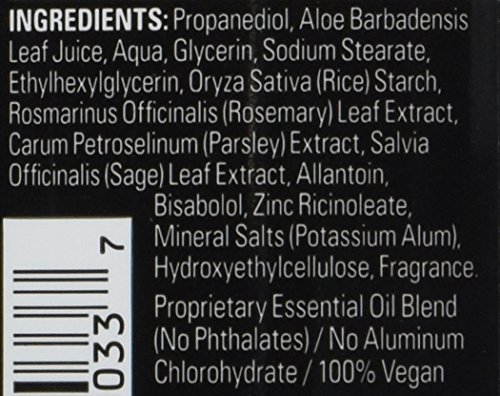 Forest natural deodorant maximum protection. Contains no aluminum, triclosan, alcohol, phthalates, parabens or propylene glycol. Strong, long lasting natural protection with a woodsy scent. Goes on clear, non staining, dries fast. Stops odor naturally and keeps you dry without the anti perspirant chemicals. 100% vegan. 100% us made.Feature