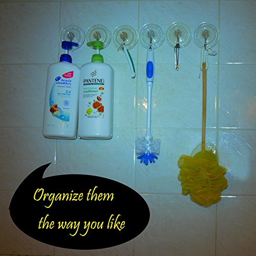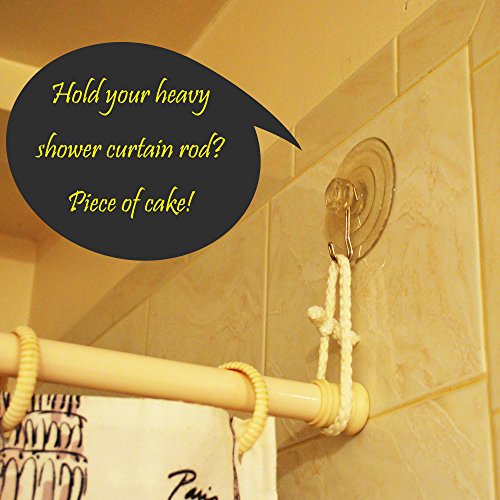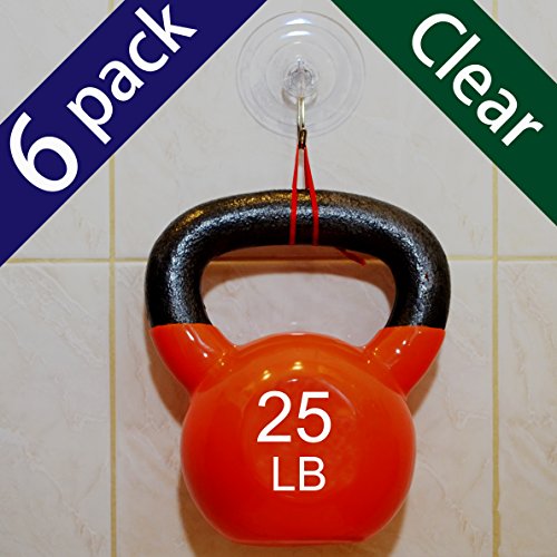 SillyCute (TM) Heavy Duty Suction Cup Hook, Bathroom Organizer, Shower Hanger, Kitchen Manager, Window Mount, Wreath Holder, Clear, 3 1/4", 6-Pack