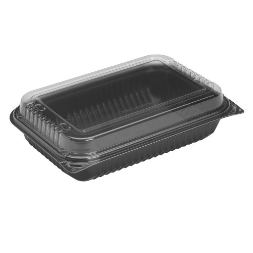 SOLO 919021-PM94 Creative Carryouts Polystyrene Hinged Dinner Box, 11.5" x 8.1" x 3.7", Black/Clear (Case of 100)