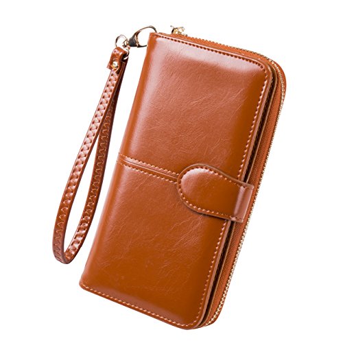 -. Title : Happyear Women's Oil Wax Cowhide Leather Purse with Zipper Pocket