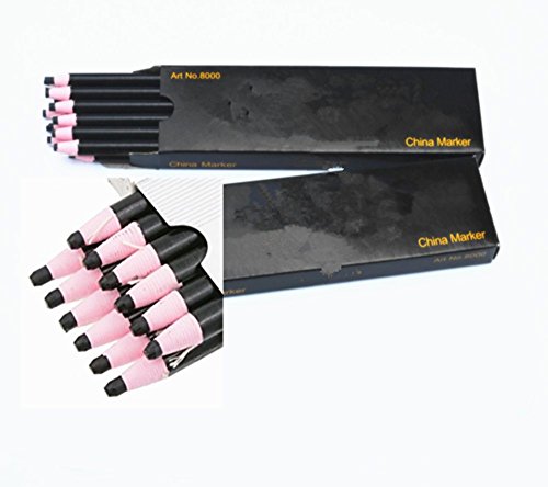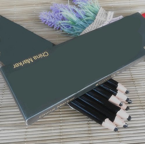 Marker Pencil, BeeSpring 12PCS Peel Off Marker Pencils Crayons Chinagraph Grease Wax Pencil For Glass, Cellophane, Cloth, Leather, Metal, Etc. (Black)