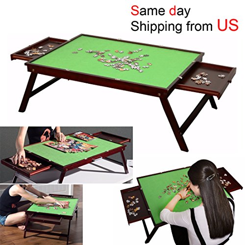 Features: 1. Suitable for 1000pcs puzzles 2. Massive sorting space: 2 drawers 1 big table top 3. People can sort similar color puzzle in 3 area. 4. People can play puzzle on bed,floor and table 5. table with leg can avoid soreback when playing puzzles 6. Store unfinish puzzle pcs into drawers. 7. Made from solid wood for long term use. 8. Wooden fence to prevent puzzle fall out. Item includes: 1. 1x strong wooden table board 2. 2x wooden drawer Shipping: 1. All of our package are packed with heavy duty polyfoam. 2. Each package was pre-droptested, to ensure safe delivery. 0